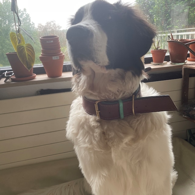 Dieses Hundehalsband besteht aus einem vollnarbigen Lederriemen, der mit weicherem Polsterleder gepolstert und mit gewachstem Faden zusammengenäht ist. Es ist vollständig anpassbar. Sie können Farbe, Hardware, Größe und Höhe personalisieren und ein kostenloses ID-Tag und etwas Dekoration hinzufügen. Dieses Halsband ist sehr angenehm für den Hund, da es ultraweich gepolstert ist und außer den Nieten aus massivem Messing keine Metallteile mit der Haut des Hundes in Berührung kommen. Unsere Halsbänder sind die richtige Wahl, um Ihrem Hund ein einzigartiges Aussehen zu verleihen, ohne auf Komfort, Qualität und Langlebigkeit zu verzichten. Das Wohlergehen Ihrer Hunde steht immer an erster Stelle, deshalb verwenden wir nur italienisches Vollnarbenleder und erstklassige Beschläge, die speziell für Hundezubehör entwickelt wurden.